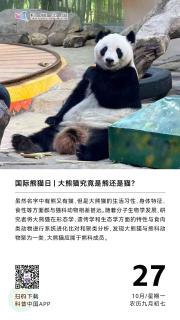国际熊猫日,是于2017年10月27日由世界自然基金会(WWF)中国办公室发起设立的节日,日期定在每年的10月27日,倡议国际社会各界像关爱大熊猫一样,关爱其他濒危野生动植物。